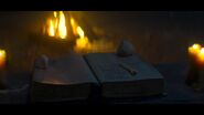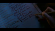 The Book of the Beast was present at the dark baptism of Sabrina Spellman. As Faustus Blackwood guided Sabrina into signing her name in the book, she realized that she did not want to give up her mortal life and follow the Path of Night. Subsequently, Sabrina decided to flee from her dark baptism.[1]