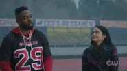Veronica congratulates Archie after the game. While they may not have won, they did score, and they’re also starting to win over the hearts and minds of the town. And thanks to Veronica's side wager with her father, the league will no longer try to pressure them to withdraw. Derek then approaches and congratulates Archie on a good game. Archie tells Derek to keep working and keep getting better.