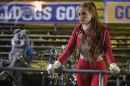 Cheryl leads the River Vixen’s performance at the game between the Bulldogs and Stallions. Veronica, Tabitha, and Reggie cheer her on from the crowd.