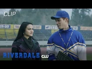 Long after the team has left, Archie and Veronica remain behind to discuss the future of the Bulldogs. Archie is concerned with the lack of fan support. The Bulldogs were supposed to inspire the town, and Riverdale was supposed to rally behind the Bulldogs, but no one comes to their games. In that case, Veronica tells Archie that she’ll work on getting the town to back the Bulldogs again. Archie simply needs to keep the team motivated in that time. Archie then playfully asks about him and his need for motivation, to which Veronica replies, "chin up, Andrews," and kisses Archie.