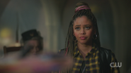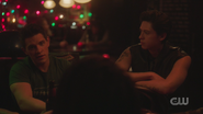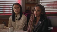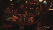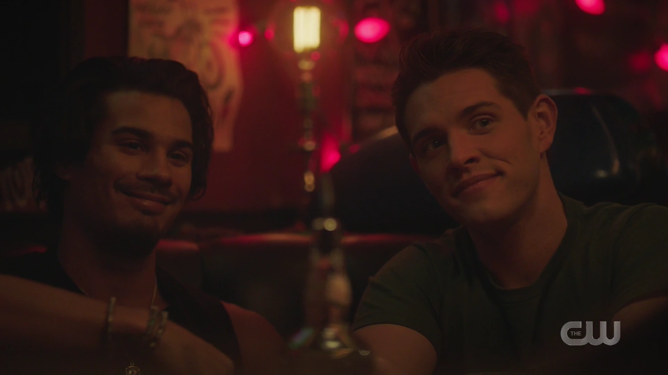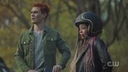 Archie reconvenes with Toni, Kevin, Fangs, and Sweet Pea at the Wyrm to catch up for lost times. Toni had a job lined up after graduation with Riverdale Social Services, but their offices got shut down. Fortunately, Riverdale High needed a guidance counselor. Kevin also works at Riverdale High as the drama teacher. He got his BA from Carnegie Mellon and Pittsburgh, where Fangs graduated from the University of Pittsburgh. Kevin and Fangs remained boyfriends throughout that time, and now they live together with Toni in an apartment on Cloverfield Lane. As for Sweet Pea, he held down the fort while they were gone, and then when Toni returned, they revived the Serpents, under Toni’s leadership, who was crowned the Serpent Queen. Archie then asks about the influx of truckers. Sweet Pea explains that the Serpents drive trucks to make cash, including himself and Fangs. Archie then asks about Cheryl. After Toni got back from Highsmith, she checked on Cheryl a couple of times, but it didn't amount to much.