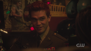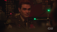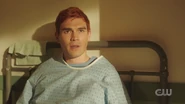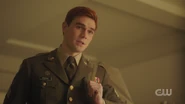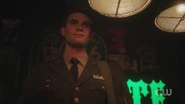 Archie awakens from his slumber at the VA Hospital. General Taylor informs him that he’s been discharged and is being sent home after seven years of service. Archie seeks to continue the fight, but General Taylor instructs him to return to Riverdale, where he hopes Archie will resurrect the RROTC program. That evening, Archie reads A Farewell to the Arms to an unconscious and paraplegic Corporal Jackson. The following morning, Corporal Jackson awakens just as Archie is preparing to leave for Riverdale. Archie looks over to Jackson and apologizes for his injuries, though he’s grateful to be alive, thanking Archie for rescuing him. Before parting ways, Archie gives Jackson his card and says to look him up once he checks out the hospital.