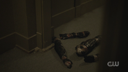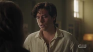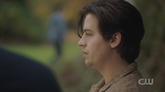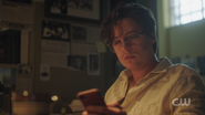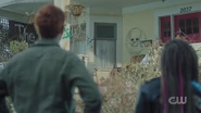Jughead returns home to find an eviction notice on his door and Jessica on her way out. She no longer wishes to be with Jughead and is leaving to stay with a friend. She also informs him that debt collectors stopped by. Jughead pleads with her to stay, but she leaves, wishing him luck on his book, as it’s the only thing he cares about.