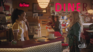 Archie arrives in Riverdale to find the town sign burned and Pop's Chock'lit Shoppe filled with truckers and Southside Serpents. Tabitha Tate works at the front and offers him a seat at the counter. She also welcomes him to head downstairs to the Whyte Wyrm, where Archie finds Toni, Fangs, and Sweet Pea performing on stage.