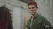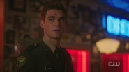 Archie asks Toni what she meant when she said that Riverdale had changed. Rather than telling him, Toni offers to show him tomorrow. But for the night, Archie will be crashing at the El Royale since his mom rented out the house. After Toni leaves, Archie makes a call to Betty.