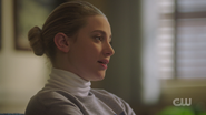 The next day, Betty goes back to therapy and lies to Dr. Starling about having nightmares. However, she knows that Betty is lying and that she is withholding information. Betty reveals that when she got to TBK’s lair, the victim was already dead. It wouldn’t have mattered if Betty waited for backup, as she was already dead. While this is true, Dr. Starling points out that with backup, Betty wouldn’t have been captured and the Trash Bag Killer wouldn't have escaped. Betty hasn’t spoken much about those two weeks she spent in captivity. Dr. Starling wonders how often she thinks about it. Betty replies that she’s only concerned with catching TBK. She then gets a call from Archie.