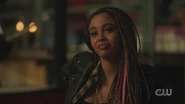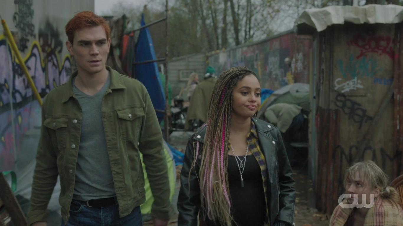 After the performance, Archie and Toni catch up after seven years since their last encounter. Toni, who is now pregnant, says that she’s keeping the identity of her child’s father a secret. Archie then asks about the Wyrm, which is officially owned by the Serpents. They put their cash together and purchased it from Hiram Lodge. Archie notes that the bus ride into town felt different and that Riverdale doesn’t feel the same, leading him to ask about Pop Tate, who Toni reveals is retiring.
