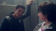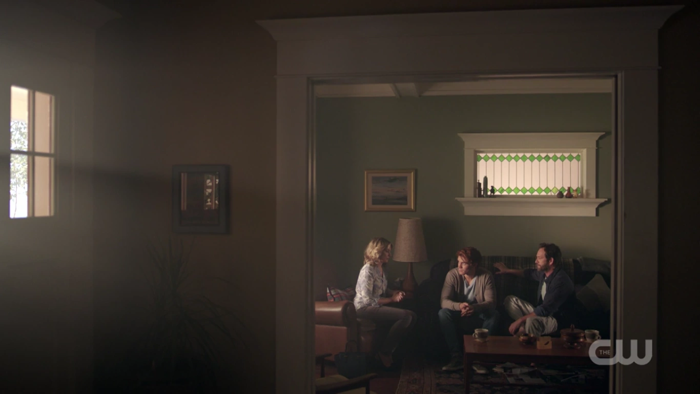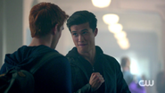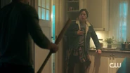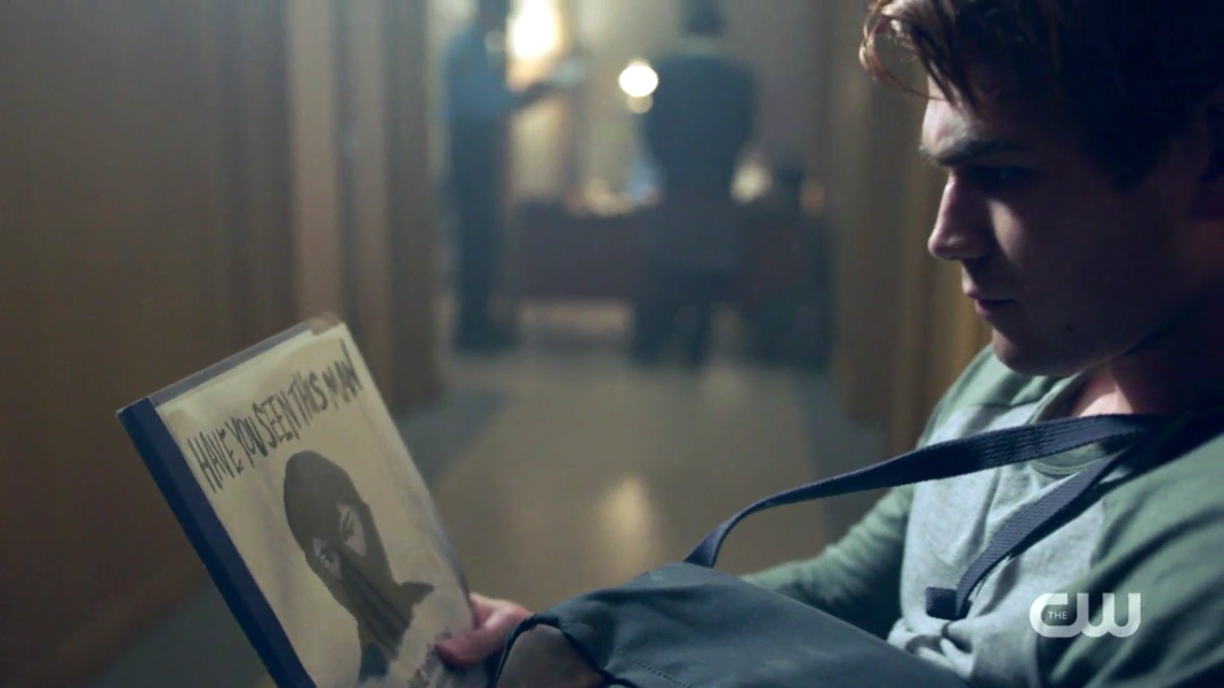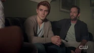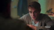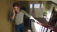 At the Andrews house, Archie makes breakfast as Fred enters the messy kitchen. Initially planning to take it up to his father as he rests in bed, Fred comes down to the kitchen due to the food burning, sarcastically asking if they need a fire extinguisher. While he appreciates Archie's effort, Fred wants to start moving around on his own. After finishing off the last of his energy drink, which he is in constant need of due to lack of sleep, Archie receives a call from the Sheriff's office. He leaves Fred in the kitchen as he picks up the phone, hoping that it is Sheriff Keller on the other end to update him on his father's case, but is, however, disappointed to learn that it is merely a deputy following up on his prior calls.