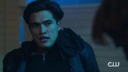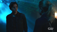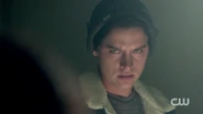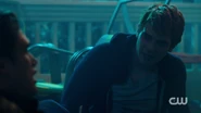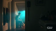 With this news, Jughead goes over to Archie's house, where he is nearly savagely attacked by Archie with a baseball bat as he enters through the back door. He has been walking around town all night, trying to wrap his head around how bad the situation he is facing is. With FP facing twenty years, the lawyer thinks that he should take the deal because if he doesn't and the case goes to trial, he could be facing forty. Jughead confesses that he is really scared of what will come next. Archie replies that he is scared as well. But of what, Jughead asks.