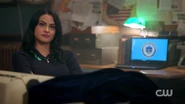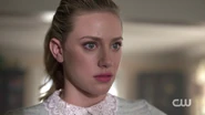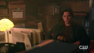 Betty phones Jughead with a plan that could potentially save the diner as well as help FP with his legal troubles. However, after looking over to Archie's room, and noticing that it has gone unslept in for another night, Betty tells Jughead to meet her at the Mayor's office. She then calls Veronica to inform her that Archie hasn't slept in his room since he and his father returned from the hospital.