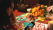 After finishing up at Retro Night, Jughead went back to the trailer, where he receives a call from his father, who was upset that he had gone to see Penny Peabody. Jughead explains that they didn't have a choice. FP asks if he paid her, which Jughead hadn't because she said it was a favor. FP warns Jughead against contacting Penny ever again as he did not want to be in bed with the Snake Charmer.