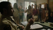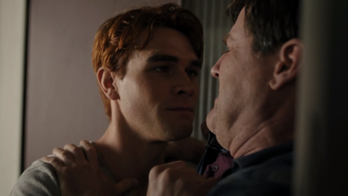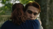 Archie, Veronica, Jughead, Betty, and FP arrive to find Mary waiting outside the house, along with Sierra, Tom, Josie, and Kevin. Mary hugs Archie and expresses how proud of Archie she is.