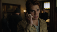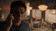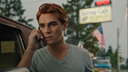 Jughead, Betty, Veronica, and Archie head to a nearby diner. Archie is having trouble dealing with his father’s death. While his friends believe that Fred died a hero, Archie just wishes he hadn’t stopped to help the lady on the side of the road. He heads outside for some air, during which time he gets a call from FP, who informs him that they found the hit and run driver. His name is George Augustine. He lives in Cherry Creek. No priors, and he’s out on bail, which angers Archie, who will see to it himself that his father gets justice. Archie enters a phone booth and finds George Augustine’s home address in a phone book.