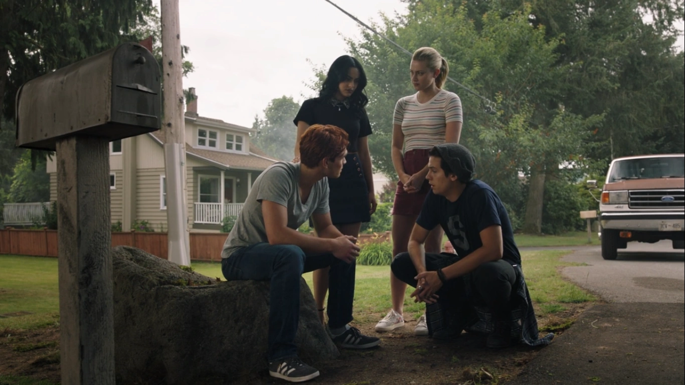 The four of them head inside for breakfast, where they discuss their weekend camping trip. Betty reminds the group that this may be their last chance to do something like this as next year they’ll be preparing for college. Archie then gets a call informing him that his dad has died. He drops to the ground. Betty, Veronica, and Jughead rush to check on him.