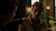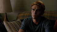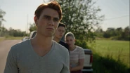 That night, Archie has a dream. He walks downstairs to find his dead Grandpa Artie standing at the front door. Arti asks for Fred, though Archie thought he was with Artie. He follows his dead grandpa into the dining room, where Jason, Cheryl, Pop Tate, Penelope, Clifford, Reggie, Hermione, Hiram, Hal, Alice, Kevin, Tom, Sierra, FP, Jellybean, Toni, Jughead, Betty, and Mary sit. Archie asks where his father is, to which Artie replies that Archie was supposed to go get him. Archie wakes from his sleep and tells Veronica that he has to go get his dad.