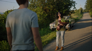 Archie finds his dad’s truck on the side of the road. He hesitantly enters the truck as Veronica, Jughead, and Betty watch. Inside the glove box, he finds a photo of him and his mother. An unfamiliar woman pulls up from behind and leaves flowers at the site. She knows who Archi is and reveals herself as being the person that Fred pulled over to help. One of her tires blew and she was stranded. Fred was the only one to stop and help. He talked about Archie the entire time. He couldn’t believe that a man like him was blessed with such a kind and thoughtful boy. She was with Fred when he died. They were working on the tire and then a car came out of nowhere. She froze in its path, and so Fred pushed her out the way. He saved her life. While she knows there’s nothing she can do to repay him, she’d like to send him a prayer and asks Archie, Veronica, Jughead, and Betty to join her.