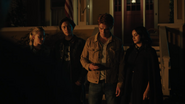 Archie, Jughead, Veronica, and Betty arrive at the funeral home