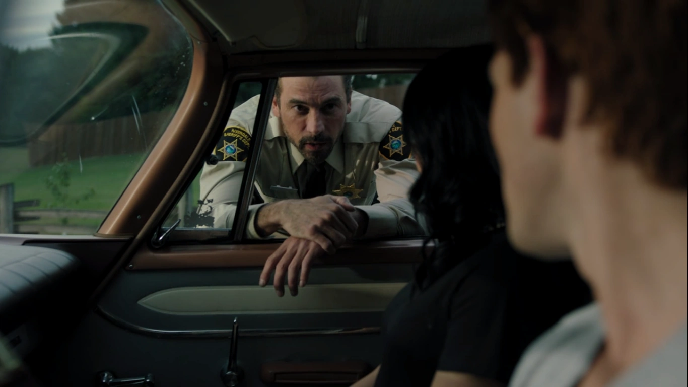 They arrive in Cherry Creek that morning. Archie and Veronica enter the sheriff station, where the police have a description of the car that hit Fred, but no plate number or suspects. Fred’s truck is still at the accident site, on the side of the road, and so Archie asks for directions on how to get there. The keys to the truck are with the rest of Fred’s belongings at the funeral home.