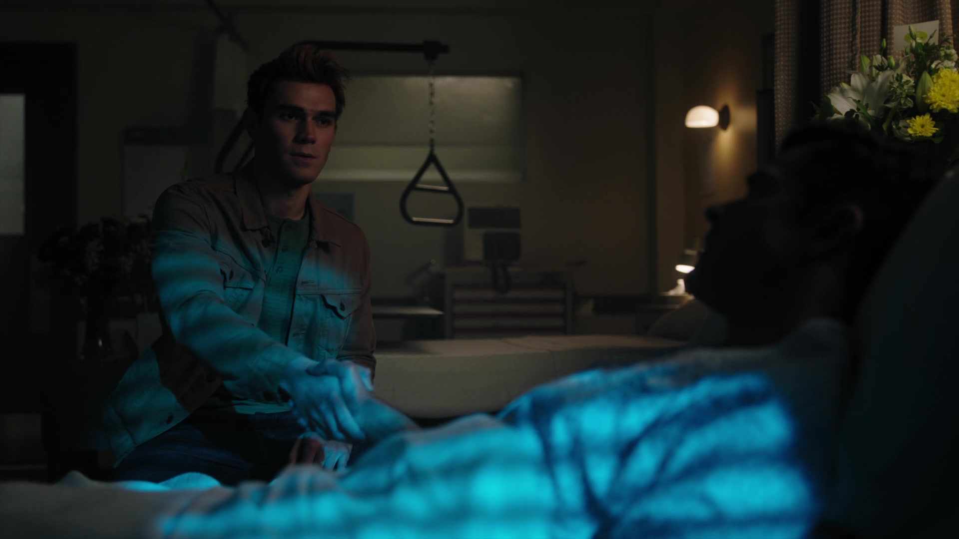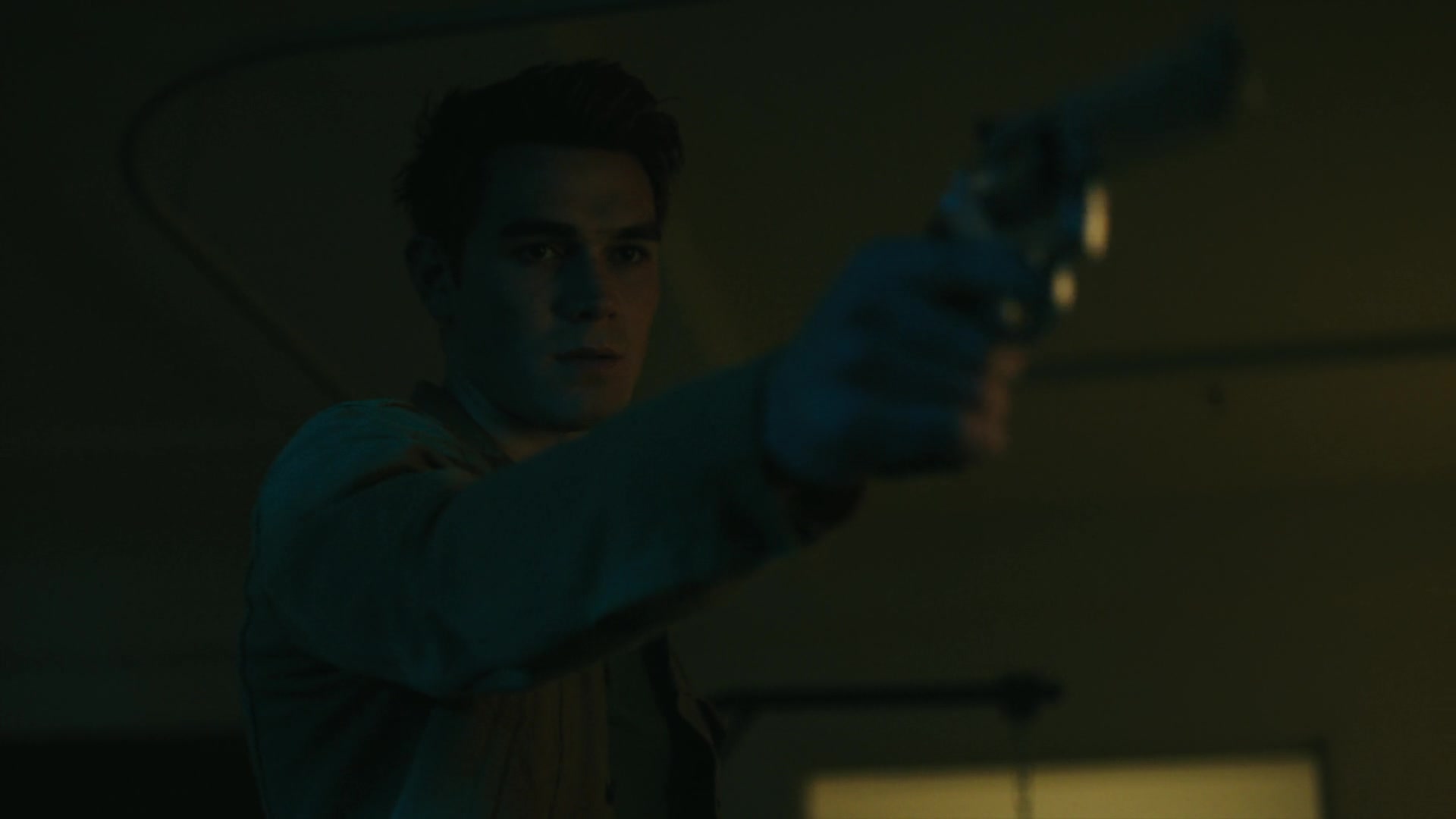 Archie arrives at Riverdale General, entering Hiram’s room with a loaded gun and shutting the door behind him.