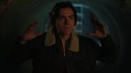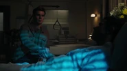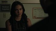 At Riverdale General, with the mob underworld smelling blood in the water, Veronica attempts to present a strong front, hoping to control the narrative, though Nico and Leo believe it may be too late for that. People are already talking as no one has seen Hiram lately and no one is collecting the vig, which angers Veronica. She wants to start collecting immediately but Nico and Leo have other ideas. They think it might be in the Lodges' best interest to align with Elio’s family, the Grandes. However, Veronica is very much against this. But as they remind her, Hiram took a bullet two inches from his heart and that their next move could be their last. So, she needs to be realistic. Rather than hearing them out, Veronica fires Nico and Leo, citing their inability to do their jobs.