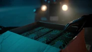 Veronica arrives at the docks. With Smithers as the driver and Reggie in the back with his face hidden and only the hat on his head visible as he impersonates Hiram, Veronica begins collecting from all the businesses her father has a hand in. And her ruse works like a charm.
