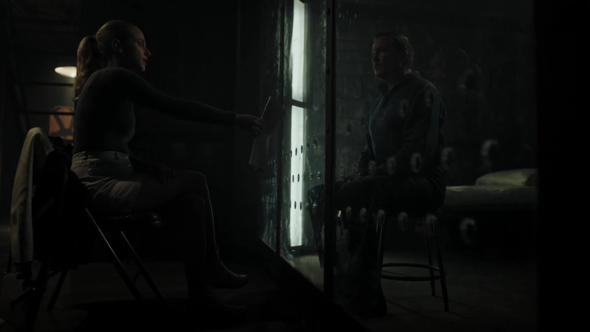 Hermione arrives at the sheriff station to find Alice preparing FP for his interview. FP announces that they’ve caught Hiram’s shooter. He claims it was Tall Boy. It seems that Hiram kept him alive in a secret cabin in the north to carry out odd jobs for him. Tall Boy allegedly resisted arrest and got violent, forcing FP to discharge his firearm, and thus Tall Boy died on the way to the hospital. Alice then tells Hermione that she would like to interview her next to get a better understanding of her perspective as both the mayor and wife of the victim. Realizing that she has been outsmarted, Hermione is forced to play along.