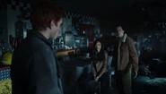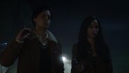 Toni and Fangs reveal to Archie and Veronica that not only did Hiram hire the Ghoulies to burn down Pop's, but also every other fire in recent memory has been their doing as well. In exchange for the destruction of Riverdale, he promised them the burned husk of the town. All Hiram cares about is the mines. Veronica apologizes for her father, but what Toni wants is justice, not an apology. "Serpent justice," Fangs specifies. Veronica claims that she will stop him, but Toni and Fangs aren't convinced that she is willing to do what needs to be done. However, Veronica insists that she will take care of him. As for the Serpents, Archie asks if they can collect signatures to reincorporate the town. Toni is initially reluctant, telling Archie that the Serpents don't run errands for anyone, but Archie reminds her just how important reincorporating the town is and how that can't be done without getting 51% of people living within the town to sign an endorsement. Toni agrees, but not before telling Archie and Veronica that if they fail to take out Hiram, then the Serpents will.