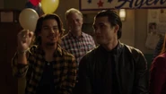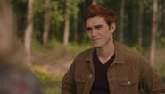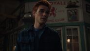 Betty joins Archie at the Wyrm for a bit of day drinking. He reveals that Eric has moved back home, but the reason for his drinking is due to the fact that he and Veronica broke up. After seven years apart, they became different people. Veronica belongs in New York, whereas Archie belongs in Riverdale, where he intends to reopen Andrews Construction, to which Betty replies that it seems they'll be neighbors for the foreseeable future, as she just reopened the Riverdale office after being reinstated in the FBI. Unfortunately, she's already missed her graduation, so Archie offers to pay for the next round instead.