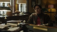 Weatherbee calls Jughead into his office to discuss how some of the students are interested in restarting the Blue and Gold. However, none of the current faculty are willing to supervise. So, Weatherbee is hoping Jughead would agree to fill the position, which he does.