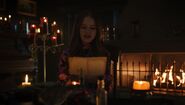 Cheryl returns from the meeting unsuccessful in her goal to strong-arm Archie and the gang into begging for her forgiveness and acknowledging the wrongdoing of their ancestors. She questions if Riverdale will ever learn. Nana Rose believes that it will, but not without Cheryl's help. She hands Cheryl the last words Abigail ever spoke as she was being burned alive, i.e. the alleged curse she placed on the town. Cheryl, Nana Rose, and Britta gather around a table as Cheryl announces that moving forward, Thornhill will be a school for lost and wayward girls. She then recites the curse. "Archibald Andrews, Jedediah Jones, and Beatrice Cooper. I repudiate you with my dying breath. And in Satan's name, I curse you. Burn me, but you will never escape my wrath, nor Satan's. The unchained elements of the power of darkness are lying in ambush. Beware. My revenge will strike down you and your accursed houses. And I will bathe in the blood of your sons and daughters. Immortal, I shall return, again and again, to torment and destroy you." Moments later, a gust of wind sends Thornhill's door flying open, much to Cheryl and Britta's shock.