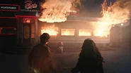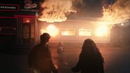 Jughead and Tabitha rush to Pop's to find it up in flames. They arrive just as the diner explodes from within.