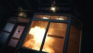 A Ghoulie sitting in the parking lot of Pop's exits his car and sets the diner ablaze with a Molotov cocktail.