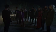 The town hall meeting is underway. Archie explains that they're not looking to reincorporate a town that was, but a town that may one day be, with the proper leadership that is. Which is why they're hoping that it won't be a mayor that'll lead them into glory, but instead a council of four. Unfortunately, the meeting is interrupted by Cheryl, who presumes that Archie, Betty, Veronica, and Jughead will lead the council. However, much to her surprise, Archie reveals that the council consists of Tabitha, Toni, Frank, and Alice. With no objections to his proposal of the council, Cheryl then asks Archie about the past, which he refuses to address. And so, moving forward, Thornhill and her lands shall cede from the corrupt township of Riverdale, Cheryl decrees, before leaving with Britta. Moving back to the subject of the council, Archie reveals the four nominees have deep roots in Riverdale and will each swear an oath to put Riverdale's collective needs before any single individual. And with a unanimous vote, the town of Riverdale is reincorporated under the leadership of the new council.