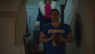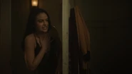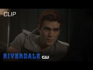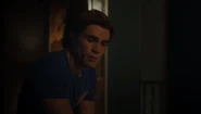 Veronica awakens in bed alone but hears the shower running and assumes that Archie is in the restroom. She enters to find Jughead brushing his teeth and Frank taking a shower. They reveal that Archie slept at the station so that some of the guys could go home.