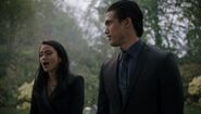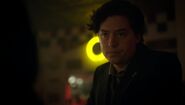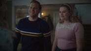 Veronica and Archie have another conversation. She's starting to feel like she's losing herself, similar to when she was with Chad. Archie apologizes, as he wasn't aware. Veronica wants to take a break until they figure out what they're doing, whereas Archie just wants to go back to dating and having fun like when they were kids. While Veronica likes the idea, they're not in high school anymore, she remarks.