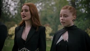 Alice comes downstairs to find Betty in the living room after having thrown the record player away, Betty admits. Years ago, she made a promise years ago to come back to Riverdale, which she broke, but now she's making Alice a new promise — that she won't ever leave her again. As Betty sings Why Stay?/A Promise, she grabs her mother's hand and tells Alice that she loves her. Moved by Betty's heartfelt gesture, Alice apologizes for saying that Polly's death was Betty's fault. She then begins to sing herself while holding Polly's urn. Alice has seemingly finally come to terms with reality, as Polly and Charles come down the steps and leave the house. With tears running down her face, Alice says that all she's ever wanted was for them to be a normal family, however, Betty explains that she never needed an entirely normal life.