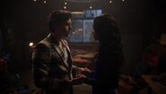 At Toni's apartment, she and Fangs take care of baby Anthony, even sharing a kiss. Back at the Andrews, Archie watches as Veronica leaves with her belongings. Elsewhere, Kevin sits in a booth at Pop's while Tabitha serves him, and Cheryl and Britta play a game of chess at Thornhill.