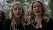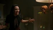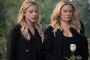 The gang rallies around Betty at the Wyrm after learning of Polly's death. Fangs brings over a round of drinks on the house. The twins have been with Cheryl, who volunteered to look after them for a few days. She told Juniper and Dagwood that their mother is some place beautiful and close by. They even hung up a hummingbird feeder in the rose garden. While Betty is hanging in there, the same can't be said for her mother, who's been listening to the Next to Normal cast album. It's a Broadway musical that Alice took Polly and Betty to see one year in New York. It's essentially about a family, where the mom wants a normal family but her life is anything but.