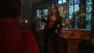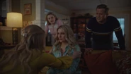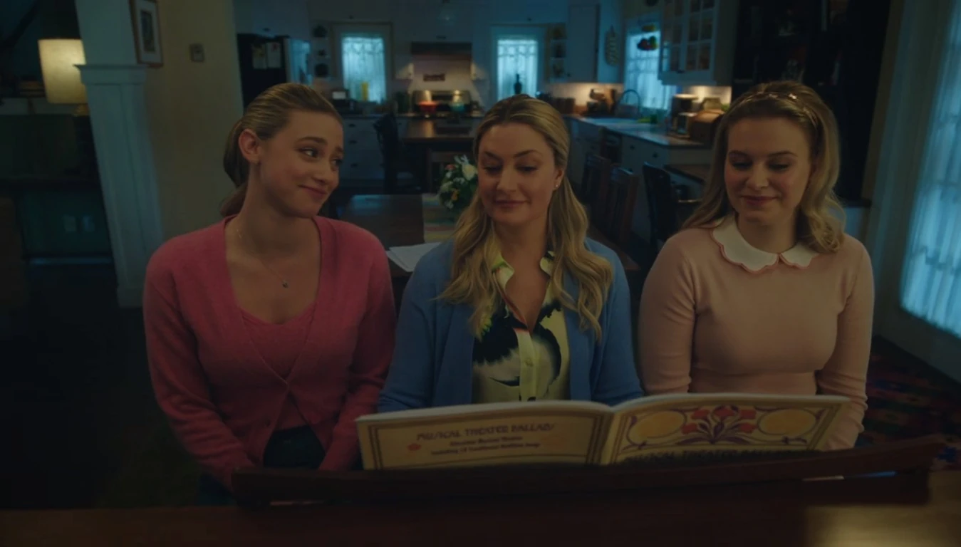 Willfully trapped in this fairytale world she's created for herself, Alice is playing the piano with Betty and Polly at her side, singing Everything Else. Betty comes home to find her mother sitting at this brand-new piano and questions just where it came from. Alice reveals that she ordered it on Glamazon and then recalls how she used to give Betty and Polly lessons. Looking to change the subject, Betty tells Alice that Archie and Veronica invited them over for dinner, but Alice intends to stay home and cook Polly's favorite, meatloaf, for dinner and asks Betty to join her. Betty agrees but first says that she has to pick something up.