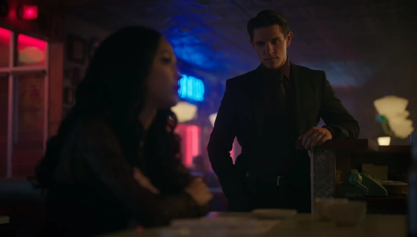 Jughead exits Pop's to find Mr. Tate waiting for him outside the diner. He informs Jughead that Tabitha is going through a phase and that their relationship is nothing more than a "passing fancy." Mr. Tate, in a moment of transparency, tells Jughead that Tabitha is out of his league and advises Jughead to do all them a favor by not showing up to the Mother's Day dinner. However, Jughead isn't threatened in the least, telling Mr. Tate that he reminds him of Hiram Lodge.