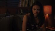 While getting ready for bed, Veronica expresses her concern for Betty and Alice with Archie, who wonders what they can do to console the Cooper women. Veronica replies that they're simply on standby for whatever they need. In the meantime, Veronica has been thinking about the seven years they lost after graduation and proposes they move in together. Veronica initially presumes that Archie will be moving into the Pembrooke, but he ultimately convinces her to move into his house with the notion of long term plans.