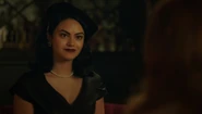 Cheryl greets Sabrina Spellman at the door. "Well, well, well, look at what the black cat dragged in," Cheryl remarks. The witches embrace, and Cheryl thanks Sabrina for coming during Nana Rose's time of need. Cheryl introduces Sabrina to Nana Rose and Britta, who inquires about how the two ladies met. Sabrina simply replies that they have a lot of mutual friends and share a lot of the same interests, one of which being their covens in the same softball league. Sabrina was the first person who told Cheryl about a transference, as her cousin Ambrose taught her. Essentially, a transference is a tricky spell that can only be performed on the night of great cosmic significance, like tonight with the arrival of Bailey's Comet. Before beginning the spell, Cheryl asks Britta to leave, so that she can Sabrina can work privately. Cheryl and Sabrina both take Nana Rose's hand and recite the transference spell as Bailey's Comet passes over Rivervale. The spell is a success and Abigail is transferred into Nana Rose's dying body. She feels free and at long last, Fen's curse is broken, allowing Abigail to pass on.