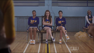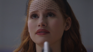 As planned, Betty and Veronica try out for the cheerleading squad together, but Cheryl, Tina and Ginger shows little interest, finding their routine to be dull and boring. This prompts Veronica to kiss Betty in an attempt to save their routine, though Cheryl is still ultimately unimpressed. Moving onto the interview portion of the audition, Cheryl brings up Betty's sister, Polly, and her disastrous relationship with Jason, which led to Polly's breakdown and her placement in a group home. Cheryl wants Betty to unleash all her anger onto her. As Betty's anger builds, she begins clinching her first so forcefully that her nails dig into her palms, leaving bloody scars. Fortunately, Betty maintains her composure, unclenching her first and giving her condolences to Cheryl and her family over their recent loss. With that being said, Cheryl welcomes Veronica to the River Vixens but tells Betty better luck next time, which Veronica refuses to accept. She stands up for Betty and tells Cheryl that she use to be just like her in many ways, trafficking in terror and behaving like an over-privileged brat, but there is always a reckoning, Veronica says, and it may even be her. And with that, Cheryl is forced to relent, accepting Betty onto the squad.
