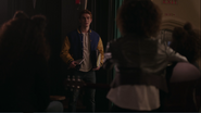 The night of the semi-formal has finally arrived, and as previously agreed upon, Archie, Betty, and Veronica attend the event together. However, with Veronica off getting punch and Archie talking with Ms. Grundy, Betty makes conversation with Kevin, who had just been propositioned in the men's restroom by Moose. Meanwhile, Archie walks over to Ms. Grundy as she sits alone by the food stand. She thought they had an understanding, but Archie corrects her by saying they have a secret, multiple secrets in fact. He reflects on the morning of July 4th when they heard the gunshot. Maybe they could've done something to save Jason or maybe they couldn't but regardless of that unfortunate incident, he needs Ms. Grundy's help, pleading with her to tutor him once more. The only thing that kept him sane during the summer was his music. He proposes an independent study with Grundy, as many mornings a week as she can spare, with him promising that's all it will be. Should she agree, he promises to tell no one about July 4th. Monday, Wednesday, and Friday, 7:30 AM, she says. She'll set it up and look into getting him credit.