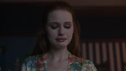 After an awkward encounter with his former friend, Jughead, at Pop Tate's, Archie finds Betty at her house. She walks down the narrow path toward him in tears with no intentions on asking him what he did in the closet with Veronica. Betty only wants to know if he loves her. Archie explains that he does in fact love her, but he can't offer the answer that she wants. She is perfect, and he feels that he isn't good enough for her and that he never will be. As the tears continue to roll down her face, Betty turns away, walking back into her house. Unfortunately, Jughead's advice proves to be ineffective in this particular instance. Defeated, Archie walks away.