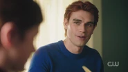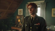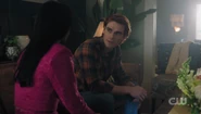 Veronica arrives in Archie's Sweet Hereafter, greeting him at the front door with a hug. She reveals that he's dead and that they need him back to continue the fight against Percival. However, Archie is reluctant, believing that his place is with Betty and the kids. Veronica explains that the real Betty needs him and that they're fighting for peace in the real Riverdale, but Archie insists that his heaven is the real Riverdale. Betty then arrives and invites Veronica to dinner, but she has to leave, though not before asking Archie to at least think about what she said.
