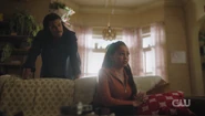 Sabrina arrives at Thornhill with a broom in hand. Cheryl welcomes her at the front door and escorts her inside.