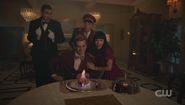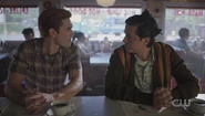 Veronica gets off the phone with Cole Porter, who has agreed to write them a song for Kevin's musical. Veronica reveals that Kevin's inaccurate song did at least bring up something that's been eating away at her. When the Red Scare came to town, Veronica tells Betty that she and Archie kissed. When asked if she likes Archie, Veronica admits that she does. However, she says that she likes Betty more and that she feels closer to her than anyone else in town. Betty has known Archie her entire life, but she feels the same way about Veronica. Maybe it's the universe telling them to swear off Archie and focus on their friendship.