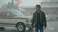 Archie gets a call from Tabitha and rushes down to Pop's to discover that the first micro house has been vandalized. In a fit of rage, he punches a massive dent in his car door.