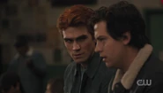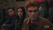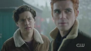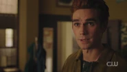 With no author named, Archie confronts Jughead after reading his article trashing Riverdale. Jughead explains that the Riverdale Choice is free press, and that's why he allowed the anonymous author a platform. Furthermore, he refuses to tell Archie the author's name in fear that he will go after him, which Archie claims he has no intentions to do, but his thoughts says otherwise. Jughead offers to interview Archie, who could offer a rebuttal to the initial article, but he informs Jughead that a town hall meeting is being called so that everyone can respond to the article in person.